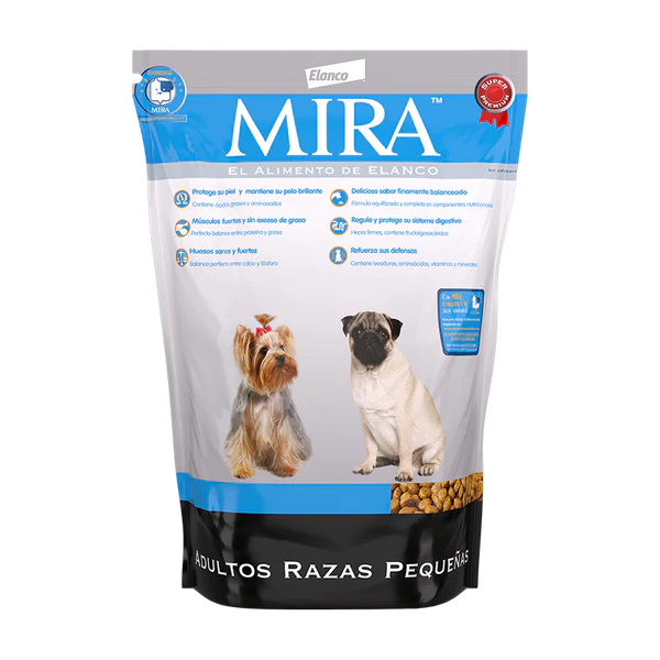 Adulto Raza pequeña. La fórmula equilibrada y concreta de componentes nutricionales como pollo y pescado, así como cereales y aminoácidos hacen de MIRA, un alimento altamente digestible y palatable. Elaborado con ingredientes de alta calidad para que tu perro crezca sano y fuerte.